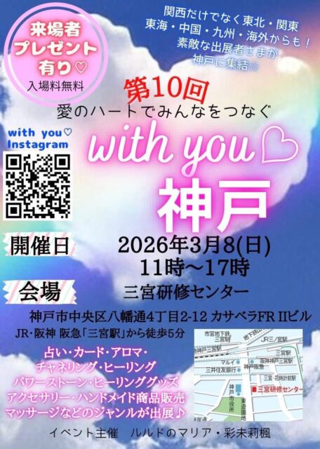 3月8日(日)、神戸市三宮研修センターで開催される「第10回 愛のハートでみんなをつなぐwith you♡神戸」に出店。